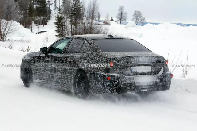 但各位从这台路试车的体态和尺寸上来看,是和M5很相符的,而且明显能看出来比3系/M3更大。最重要的是,近期小编还看到了普通5系中期改款的路试车,如下: